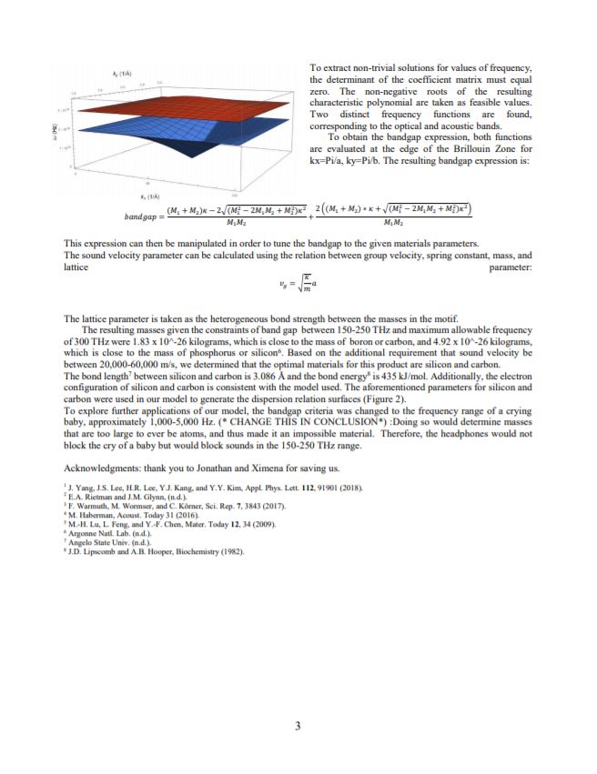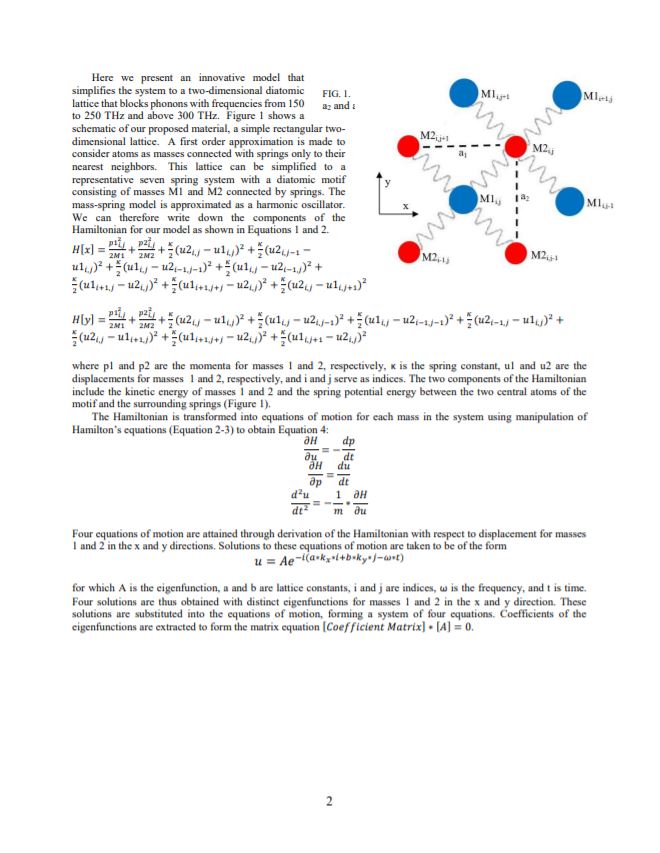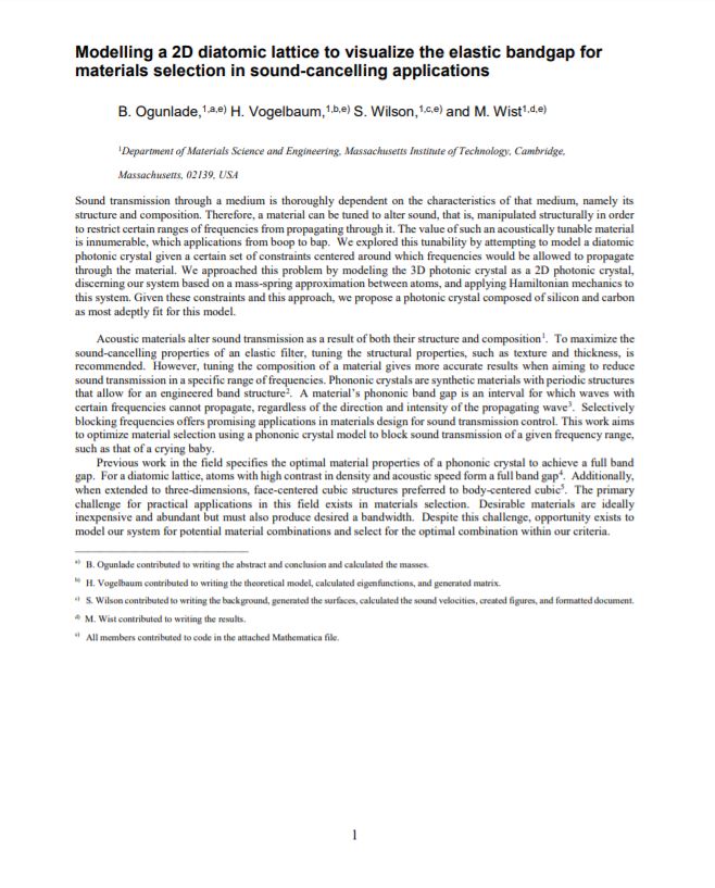 This system models a sound-cancelling material as a two-dimensional diatomic lattice. Phonons are selectively blocked in the frequency range from 150—250 THz and >300 THz.
